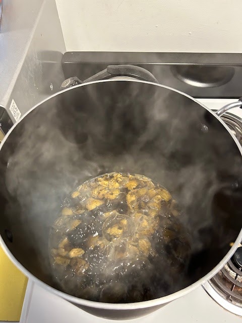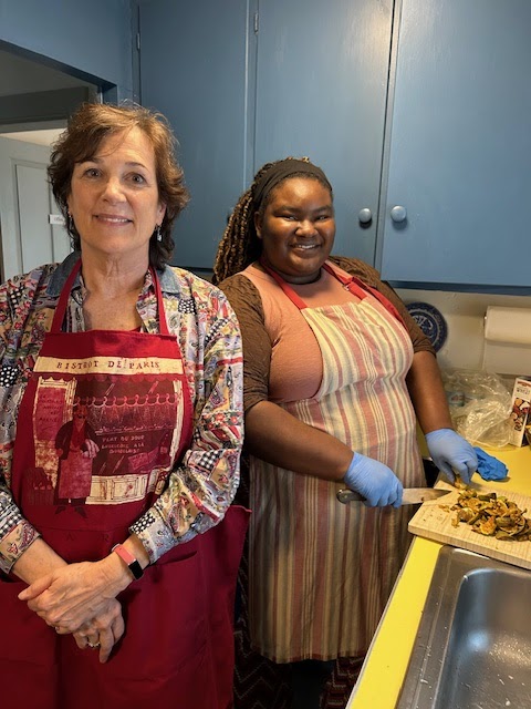 AHS intern Aisosa Oviasogie (in one photo seen with Martha Tubinis, Director of Programs at ACHC) is creating dye from walnuts.